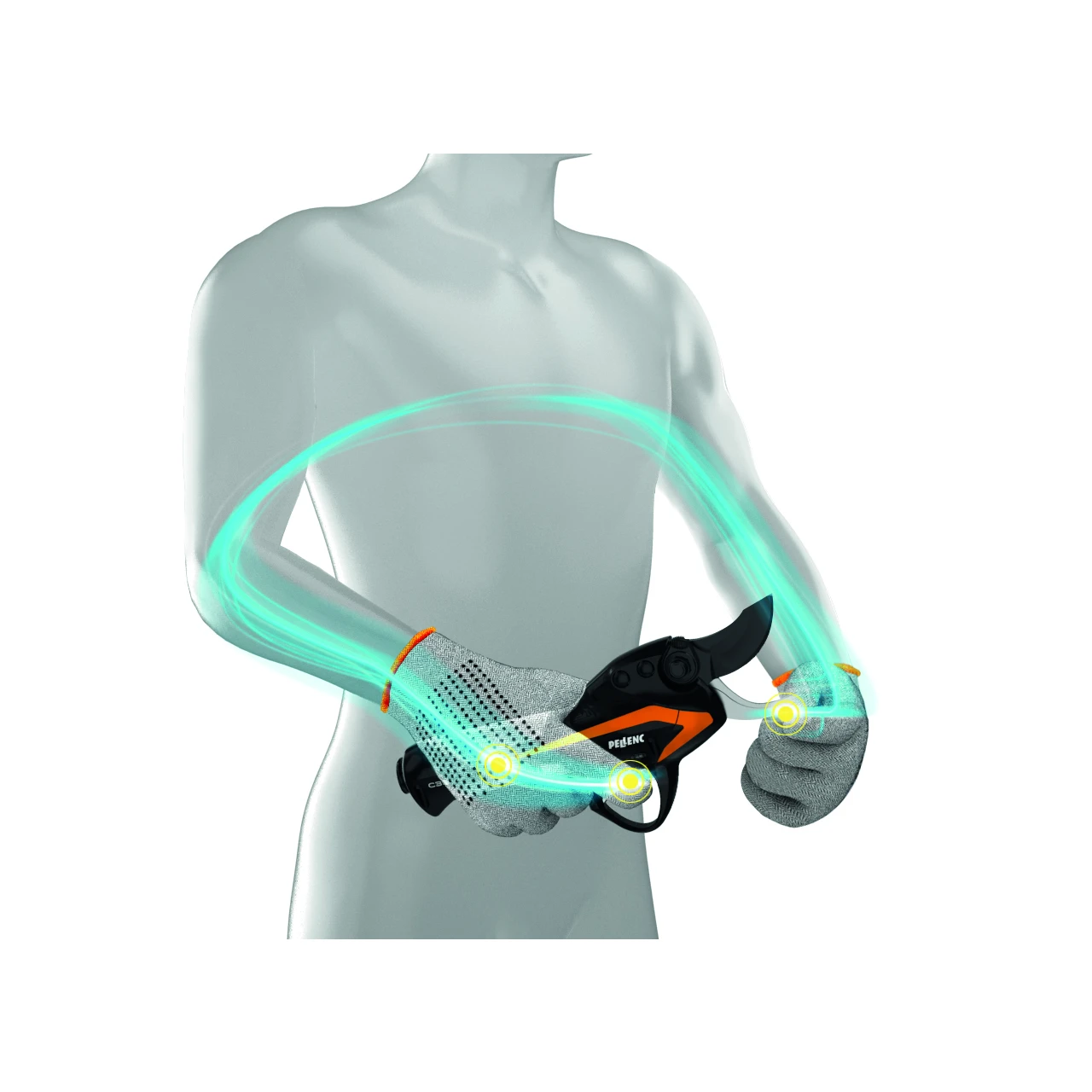 Diese neue Generation Rebscheren sind wahre Technologiekonzentrate und ermöglichen einen schnelleren und effizienteren Rebschnitt als je zuvor. Sie kombinieren geringes Gewicht mit Leistungsfähigkeit und passen sich dank des Schneidkopfs – 35 mm Durchmesser (Modell C35) oder 45 mm Durchmesser (Modell C45) – an die Dicke und die Härte des zu schneidenden Holzes an. An die Benutzersicherheit ist ebenfalls gedacht: die neue, von PELLENC patentierte Sicherheitsfunktion zum Schutz vor Schnittverletzungen namens Activ’Security stoppt bei Kontakt mit der Hand sofort die Klingenbewegung, unabhängig davon, ob Sie die PELLENC-Leithandschuhe tragen oder nicht.
