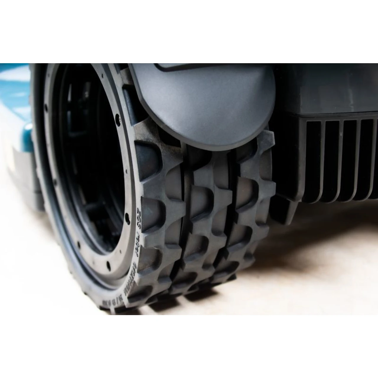 Optimale Traktion – Große Gummiräder mit Hohlkern, die sich den Bodenkonturen perfekt anpassen und den Rasen schonen.