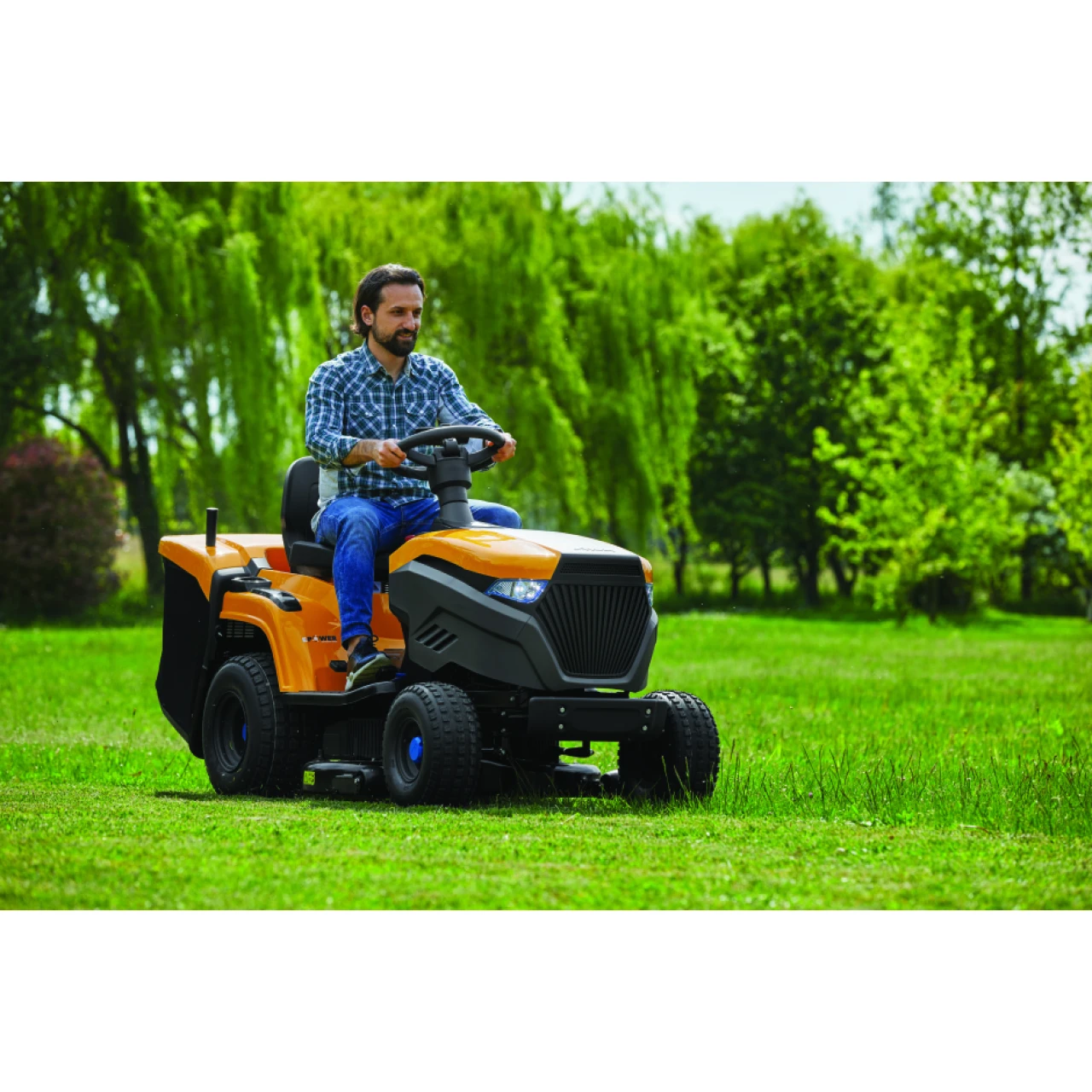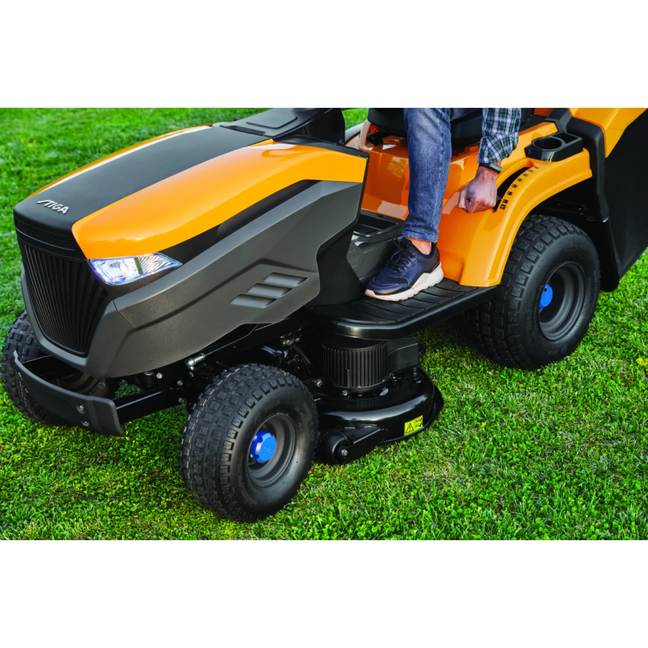 Dank Bluetooth-Modul können Sie die Maschine einfach mit der STIGA GO-App mit Ihrem Smartphone verbinden, das auch als Armaturenbrett dienen kann und übersichtliche Daten zu Ihrem Mähdurchgang liefert (auch vorherige Durchgänge können ausgelesen werden): CO2-Einsparungen, Instandhaltungsarbeiten, Smart-Ladefunktion. Über die App können Sie auch Kontakt zu Ihrem Händler vor Ort aufnehmen, um bei Bedarf schneller Hilfe zu erhalten. Durch den Eco-Modus können Sie Energie sparen, indem unter guten Mähbedingungen die Messerdrehzahl gesenkt wird, während die LED-Scheinwerfer für sicheres Mähen bei schlechten Lichtverhältnissen sorgen. Die Maschine ist mit einem beachtlichen 240-Liter-Fangkorb ausgestattet; dadurch sind weniger Fahrten zum Kompost erforderlich. Dank der großzügigen Schnittbreite von 84 cm und den 7 zwischen 25 mm und 80 mm einstellbaren Schnitthöhen werden Sie stets schnell mit dem Mähen fertig.